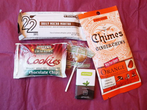 - Yummy Earth Sour Apple Lollipop – I haven’t tried my lollipop yet, but I’m excited to because I like sour apple flavor. This is organic, gluten- and nut-free, with no chemicals or corn syrup. I’m sure it’s satisfying; I’ll probably give it a try tomorrow while at work.