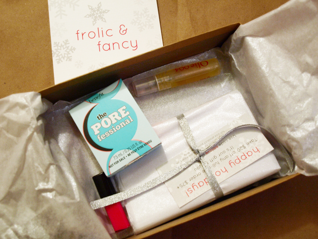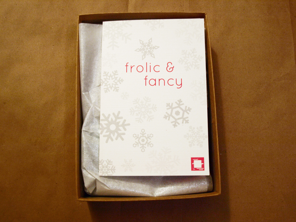 The theme for December is “Frolic & Fancy,” and the introductory card was different than the normal ones. Instead of just being a single index card, this one opened up like a Christmas card and was printed on thicker paper. It still contained the standard descriptions of all of the products, though.