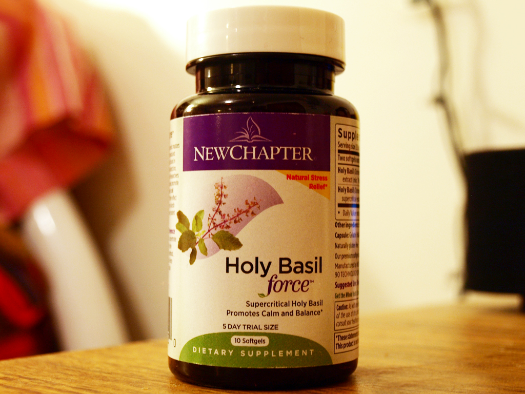 Holy Basil Force is from New Chapter Vitamins, and it promotes calm and balance. I was most interested in trying this supplement out because my job can get pretty stressful, and I can take any kind of calming help I can find! I received a 5-day supply, and took them for the past week. The pills are a little larger than your average aspirin, and dark colored. They actually had kind of a nice taste, too–not that I munched on them or anything, but they didn’t have an unfortunate taste like some pills do.