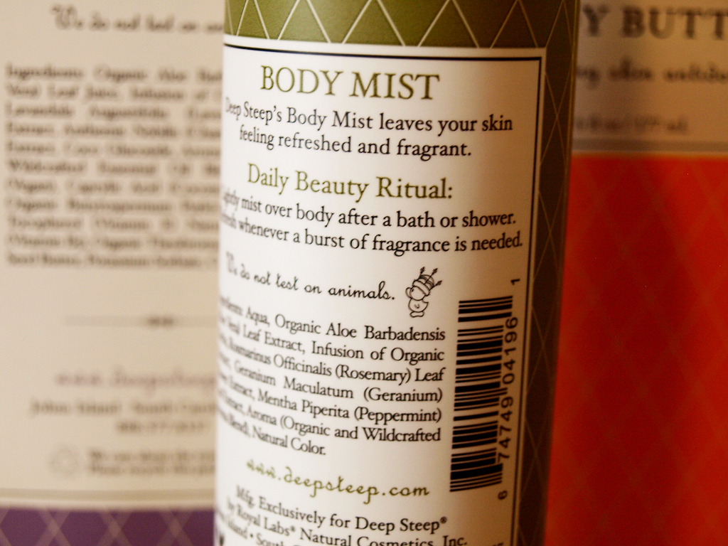 I am really excited to bring you this review of body care products because I have had an amazing time trying them out! The kind folks at Deep Steep sent me a body wash, body butter, and body mist to try, along with some literature about the company.