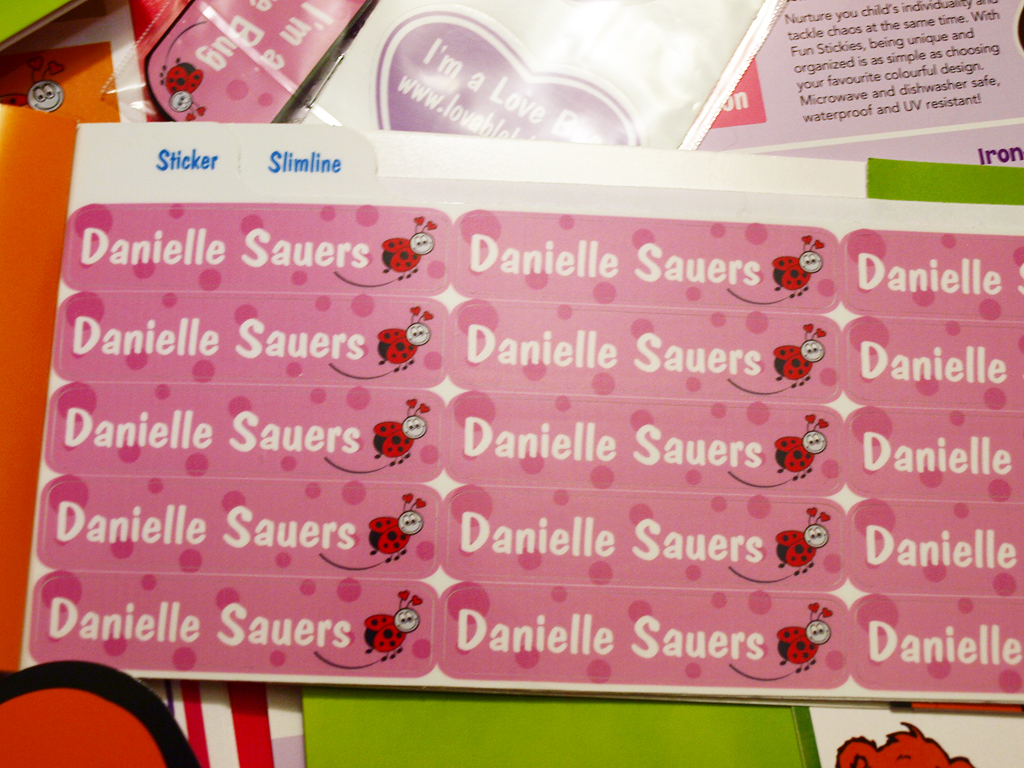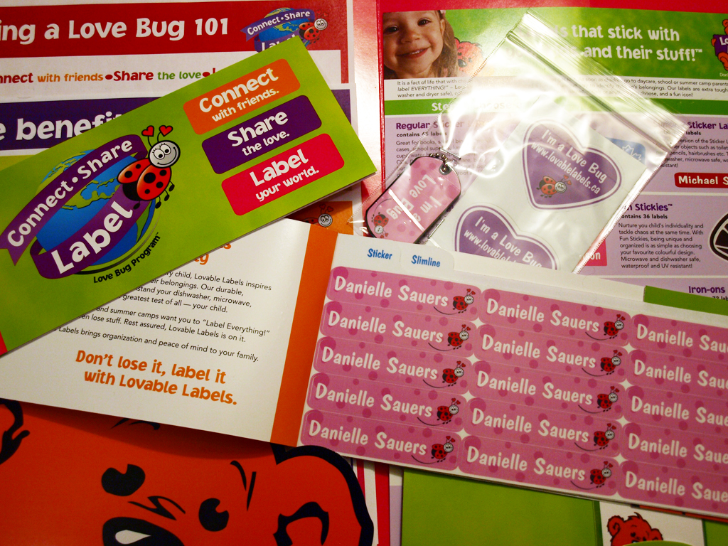 I received my Love Bug kit in the mail the other day, and it was full of information about Lovable Labels.  It even included a few labels for me, along with a key chain and stickers!  Lovable Labels first caught my eye because I’m a sucker for cute things.  When you combine practicality with cuteness, I’m sold!