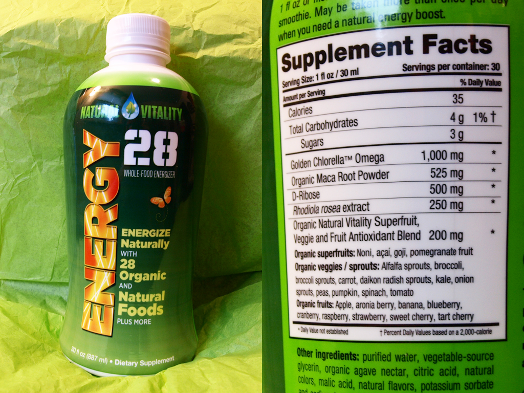 I’ll begin with the Energy28, a non-caffeinated whole-food energy supplement. I drink a cup of coffee in the morning for a pick-me-up, but I’m always looking for more natural ways to energize. I stay far away from sugar-packed energy drinks (with all of the guarine and other ingredients like that), and I rarely drink caffeinated soda. So my morning coffee is really the only caffeine I have throughout the day, and I figured if I could find something a little better for me to take its place then that would be great. Energy28 boasts the following: