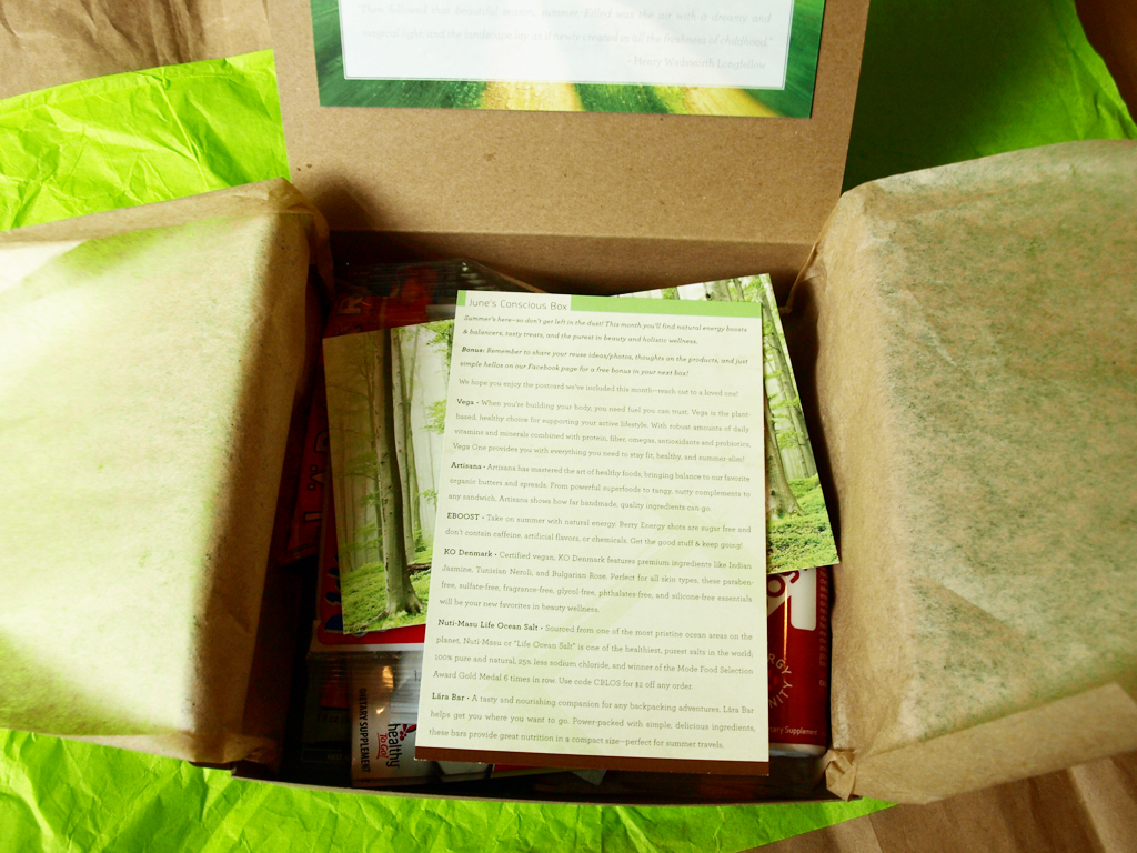 It’s Conscious Box time again!  If you’re new to my blog, Conscious Box is my favorite subscription service.  It costs $19 a month ($12 for the box, $7 for shipping) to receive a box that’s brimming with eco-friendly lifestyle items.  I’ve never been disappointed in a box since I started receiving their boxes last December; in fact, I’ve loved every one of them!