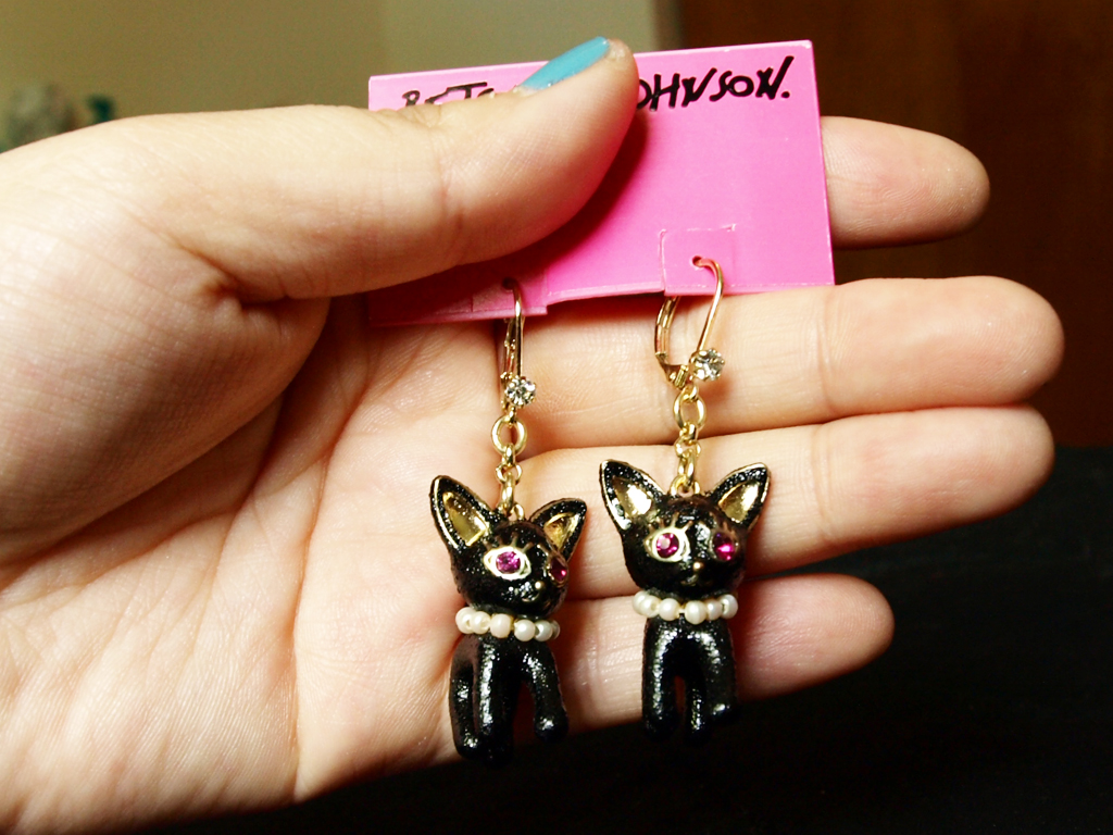 • Betsey Johnson Cat Drop Earrings, list price $40 – These earrings are so cute!  They’re larger than I envisioned them to be and are a bit heavy, but I love cats and I don’t care.  I have to figure what I’m going to wear them with, though.  Suggestions?
