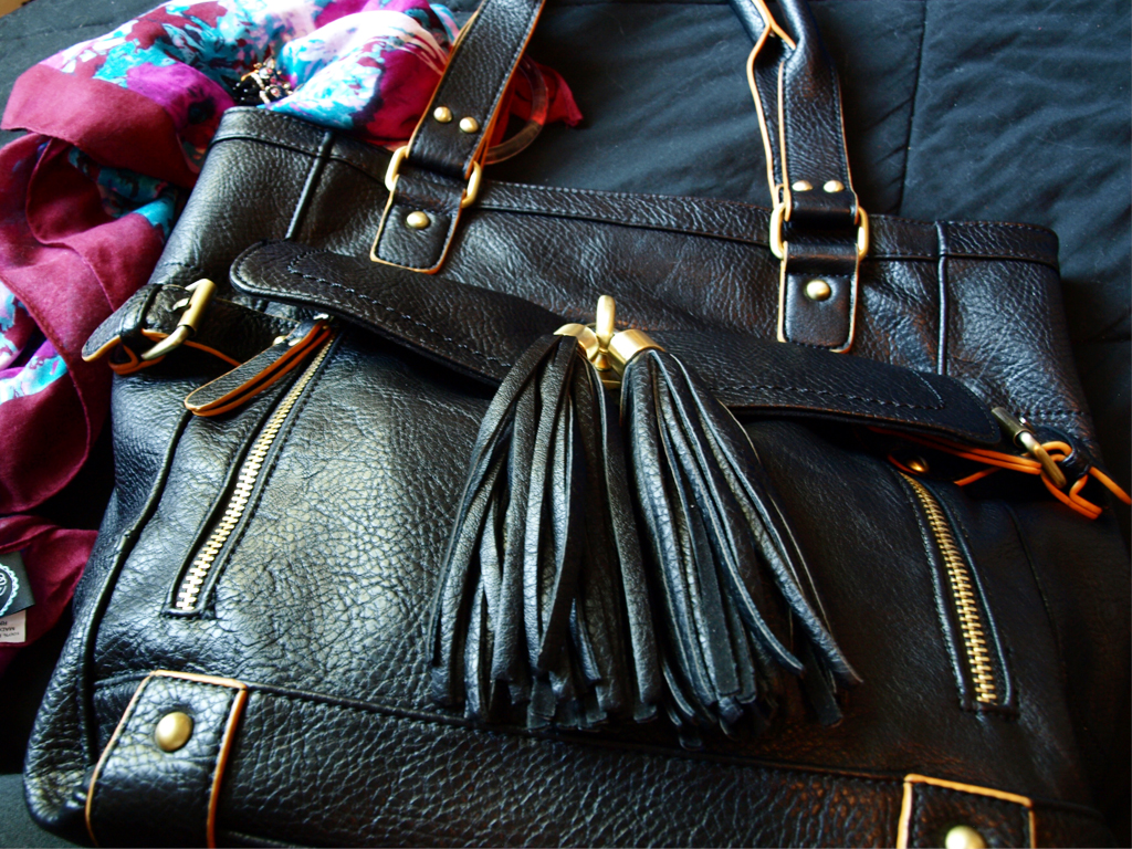 • Melie Bianco Sandy Tassel Tote, list price $94 – I LOVE THIS BAG!  Someone offered me this bag in a trade and I instantly snatched it up.  I love big purses, and this one fits all of my stuff, with room to spare.