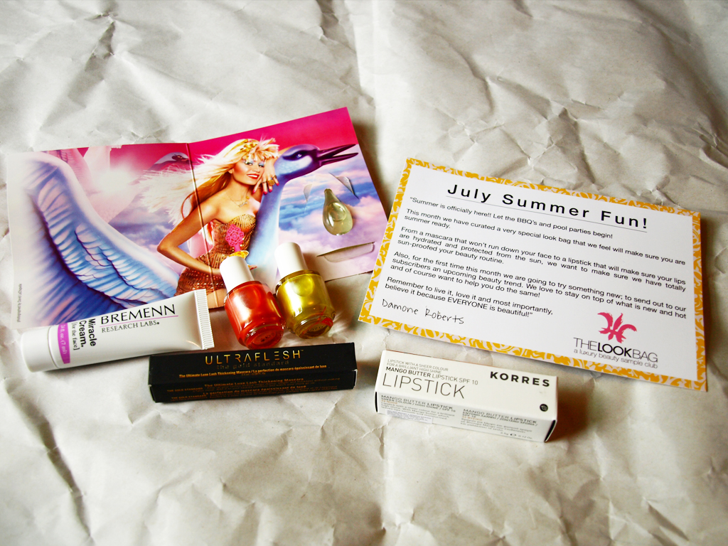 I finally decided to try The Look Bag, but even if I had loved it I wouldn’t have been able to continue because July’s bag is their last. I guess they were having some difficulty with shipping or other things, so they discontinued it in order to focus on making The Look Shop as good as possible. I admire that, since I know of other companies (*cough* MyGlam *cough*) who really screwed things up and instead of bowing out to fix their problems, they just created a nightmare of customer “service” for their subscribers.