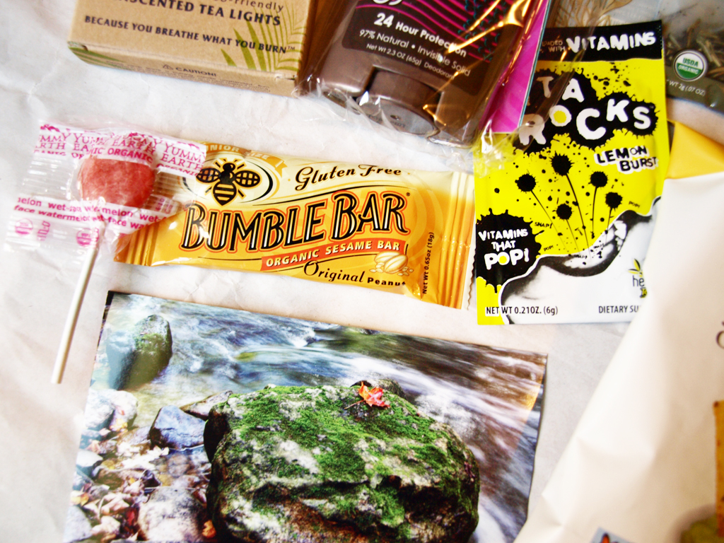 Here we go, in order from clockwise left to right (sort of).  Sorry that the above photo is blurry, guess I didn’t focus that one too well.  I was too excited about breaking into the items!  Oh and this month Conscious Box actually included descriptions of the items in the packing list email (they did away with the index card lists last month to conserve), which was much more helpful than just linking to the survey like they did last month.