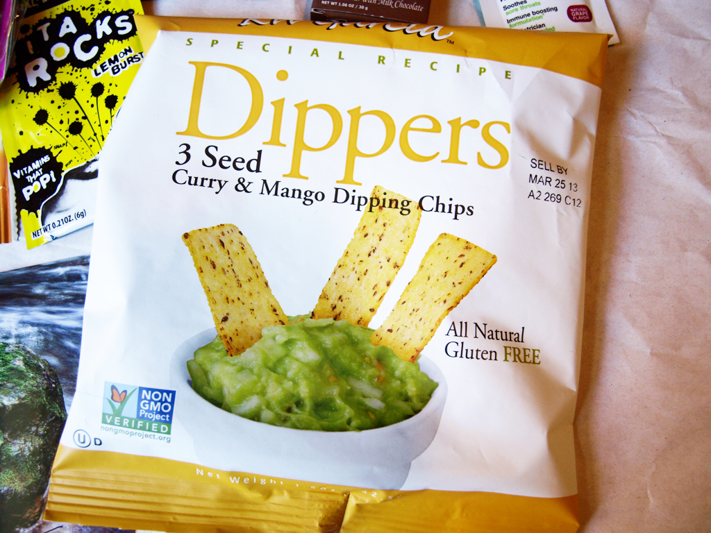 • RW Garcia Dippers 3 Seed Curry & Mango – Oh. My. GOD!  I can’t even describe how delicious these chips are, but I’ll try.  THEY ARE AMAZING.  I opened them up as soon as I got the box (the cat was also interested in them, she stuck her nose in the bag because I think she thought they were treats) and I devoured them.  I mean, really devoured.  Took no prisoners, left no survivors.  I even went to the grocery store later that night and picked up a full-sized bag (not realizing, of course, until after I had returned that there was a coupon for $1 off inside the box).  They are the perfect mix of sweet and salty and OMG I just want them all the time!