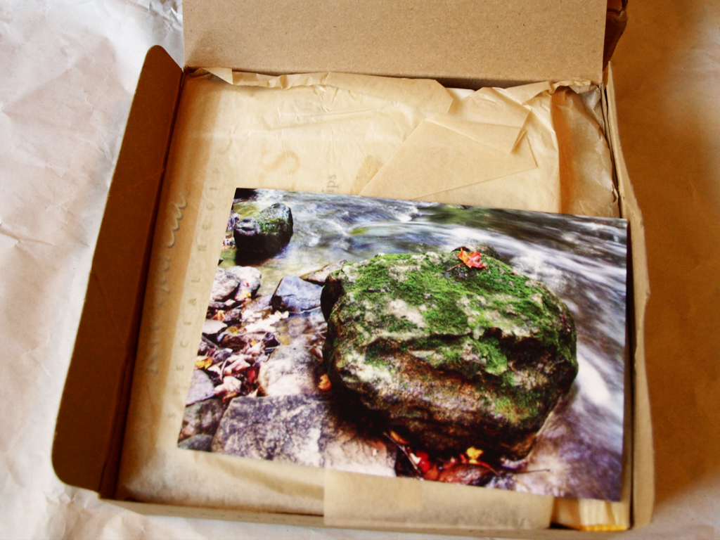 • Postcard – Conscious Box started sending these a few months ago.  I don’t really send postcards, so instead I put a few of them (along with the photos they attach to the inside of each box) into a frame that’s currently hanging over my desk.