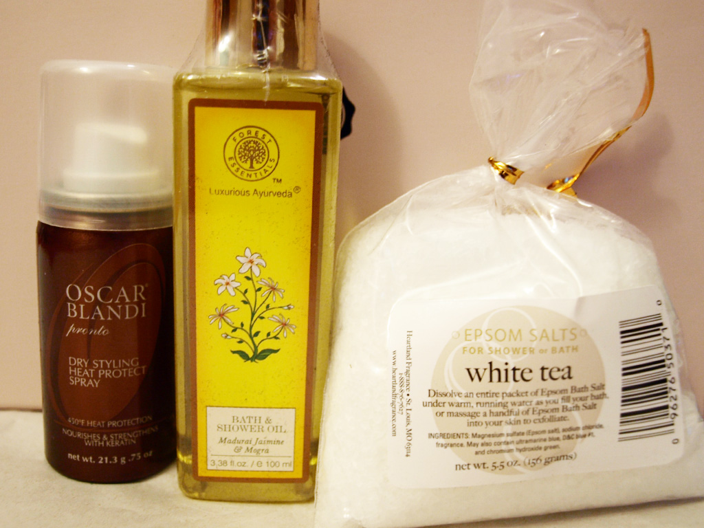 - White Tea Bath Salts by Heartland Fragrance Co. – These smell wonderful! I don’t take baths often so I’ll probably use these as an exfoliant instead of bath salts.