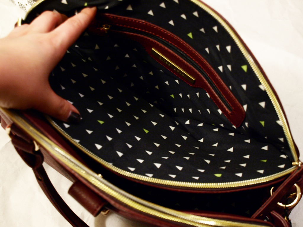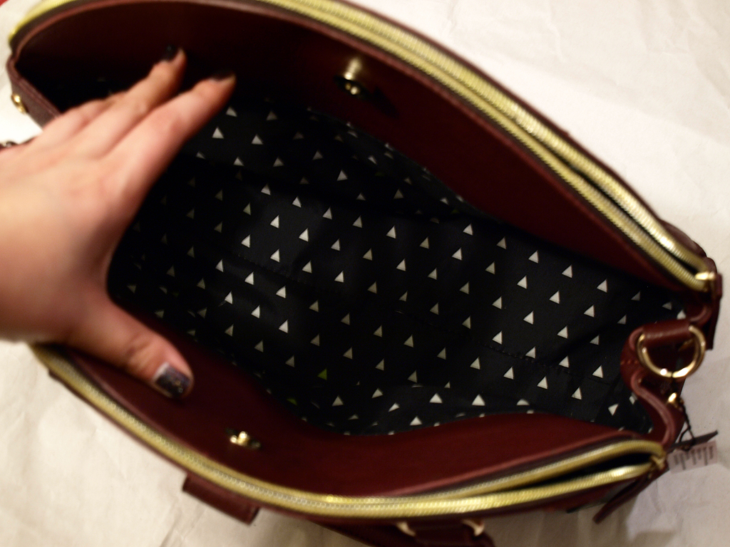 I was happy with this bag, but it wasn’t my favorite one I’ve gotten. The bag was not my first choice, I couldn’t trade for one I really wanted, but I do like this one quite a bit. I don’t have any red bags so I liked the color, and I like the shape because it can be professional or fun. It’s constructed well, but it had a big dent in the front (watch my unboxing video for more details on that).