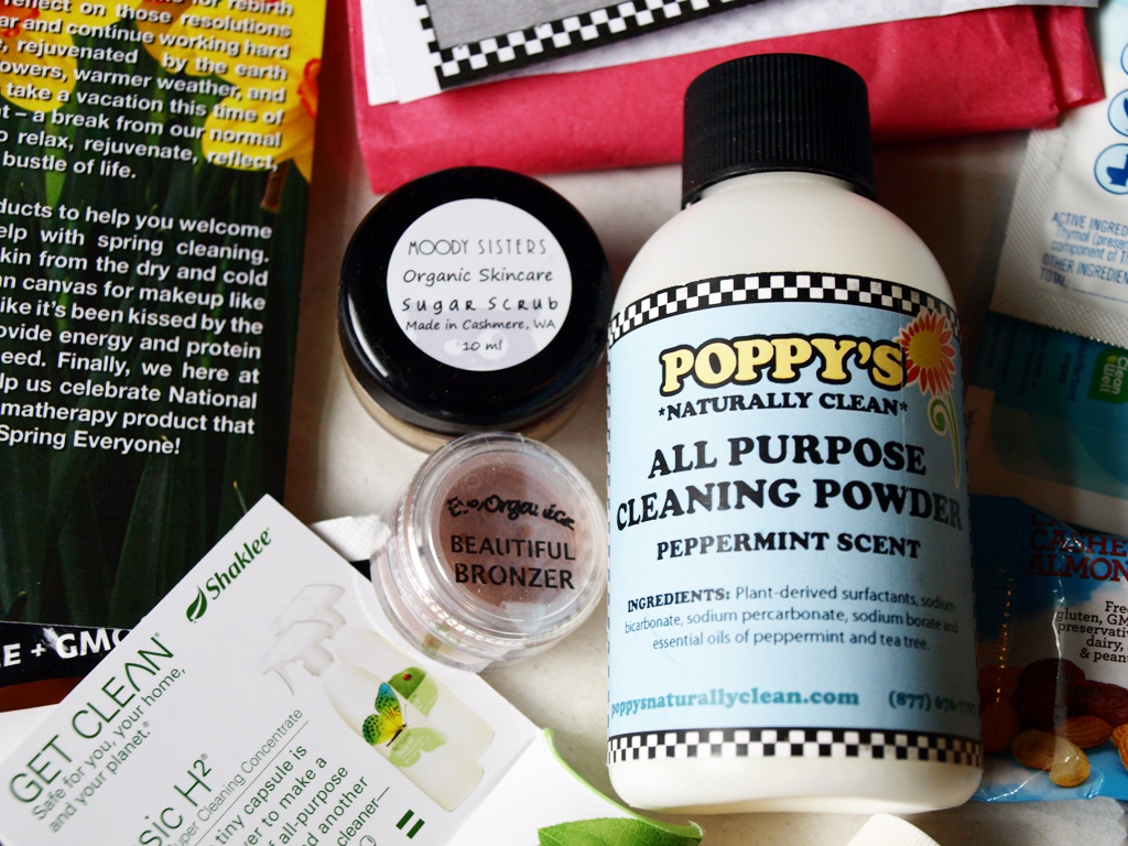 What I like best about this box is that they do a great job of sending a variety of products. There’s a good mixture of beauty and skincare, food, cleaning products, etc. Here’s what was in my April box: