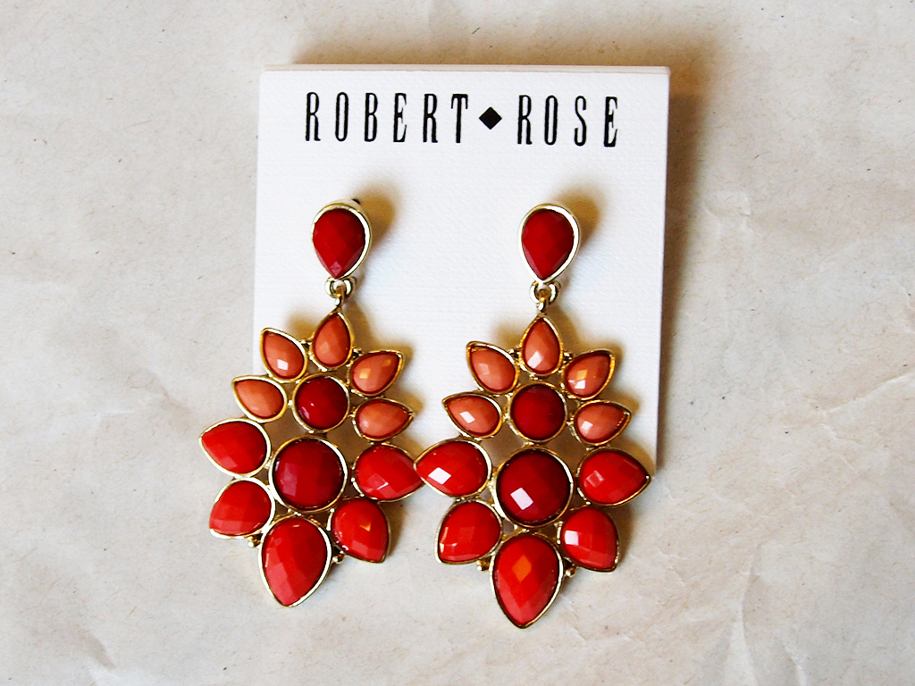 My final item is this pair of Robert Rose Stone Burst Earrings. I like them, but I haven’t worn them yet because I don’t really know what to wear them with. They’re more vibrant than anything else I own, so I’m not sure what color to pair them with. Their retail price was $22.