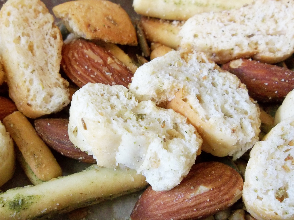 This snack was just okay, wasn’t amazing but also wasn’t terrible. Like with the flapjacks, I expected the apple pieces to be dried and hard, but they were still pretty soft (which was good). They had a similar texture to the raisins, so the cinnamon and honey almonds added a needed crunch. I must say that the almonds were delicious, and I don’t even like almonds otherwise. - The British Barbecue – rosemary crostini, mini basil breadsticks, fiery seeds, smoked almonds
