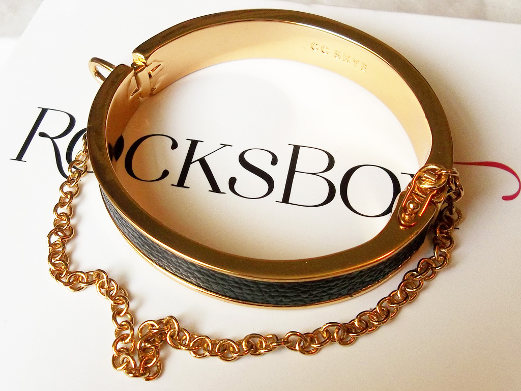 This is the worst review post of all time because I also don’t remember the name of this bracelet! I do know that it was by CC Skye, though, because it’s imprinted on the inside of the cuff in the photo above. I wanted to like this one, too, but I didn’t. First, and most importantly, it was in terrible condition! The clasp was dirty and really worn, and I think that RocksBox should have pulled this from their rotation. I can’t imagine anyone wanting to purchase it because it was in pretty rough shape (more photos below). I thought that this cuff looked cool when I opened the box, but once I put it on it just seemed awkward and I didn’t like how the chain part just hung down (it felt weird on my wrist).