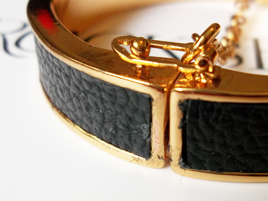 This is the worst review post of all time because I also don’t remember the name of this bracelet!  I do know that it was by CC Skye, though, because it’s imprinted on the inside of the cuff in the photo above.  I wanted to like this one, too, but I didn’t.  First, and most importantly, it was in terrible condition!  The clasp was dirty and really worn, and I think that RocksBox should have pulled this from their rotation.  I can’t imagine anyone wanting to purchase it because it was in pretty rough shape (more photos below).  I thought that this cuff looked cool when I opened the box, but once I put it on it just seemed awkward and I didn’t like how the chain part just hung down (it felt weird on my wrist).