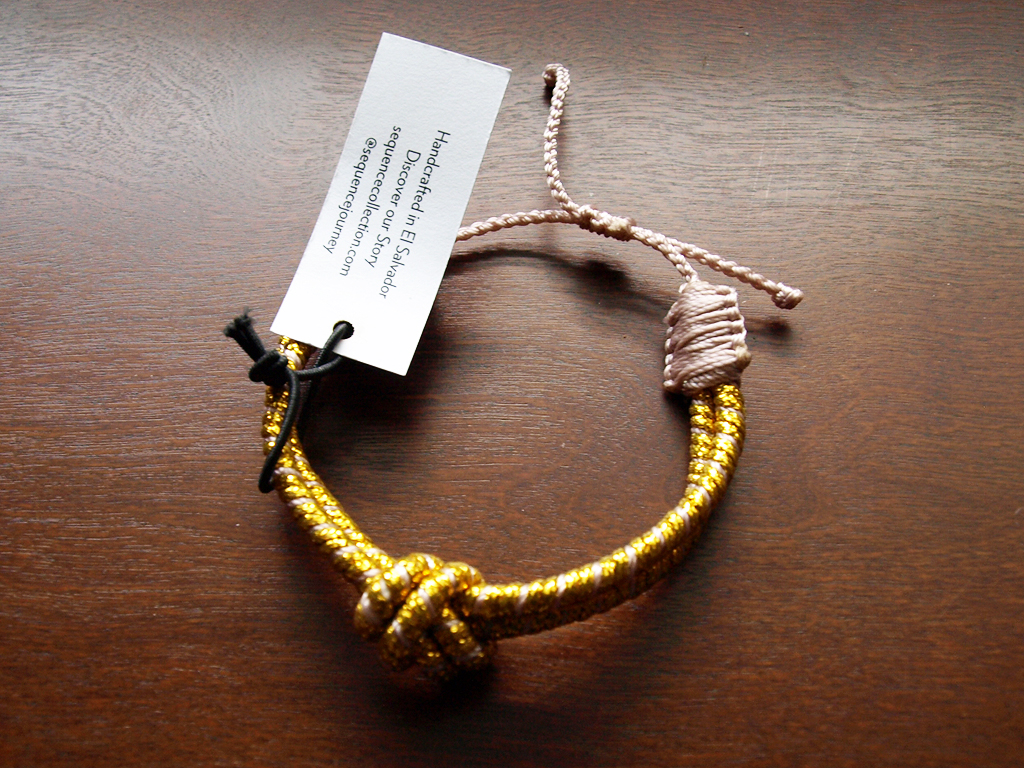- SEQUENCE Collection Love Knot Bracelet – All three of my boxes have contained jewelry, which is such a win for me! I really like this bracelet because the style is unlike anything else I own. I actually wore it today with a few others; it looks great by itself or stacked with other bracelets. SEQUENCE Collection works under the motto “Spread light + love” and was founded by Ariela Suster. They aim to create beautiful jewelry and accessories while helping to establish a creative presence that can give back to communities in El Salvador, Ariela’s home country. Sequence Workshop was born when Ariela paired with two young artisans named Natali Orellana and Oscar Bautista. They recruited at-risk Salvadoran youth in Tepecoyo and gave them an alternative to the violent gang life that surrounds the community. The workshop also offers theater, language, and various arts classes.