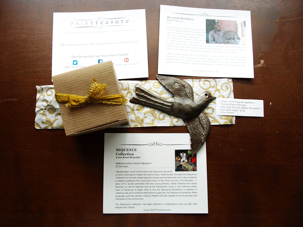 One of the many aspects I love about FAIR Treasure is that they package smaller items within little brown boxes with ribbons. I’ve saved all of them for when I need gift packaging in the future.