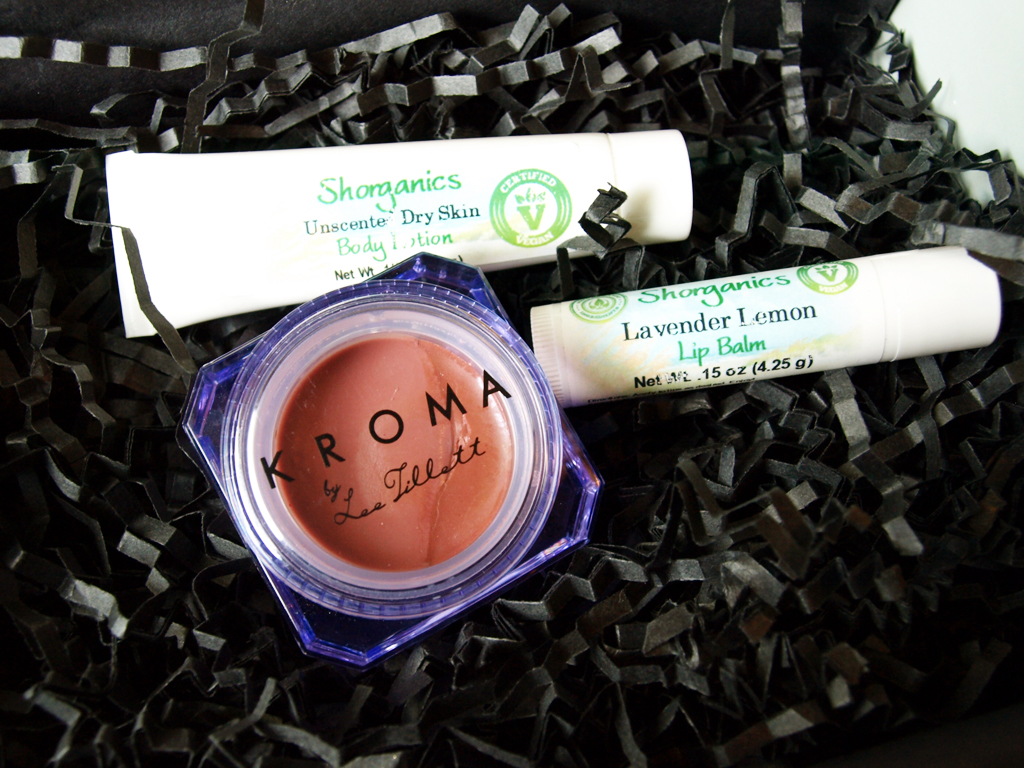 Next up are the Shorganics Lavender Lemon Lip Balm and Unscented Body Lotion ($4). I love getting lip balms, and this one smells great and is nice and smooth. It’s smells more strongly of lavender than lemon, but I really like it nonetheless. The lotion is also very nice. I like getting lotion samples because they’re perfect for sticking in my purse. The Kroma Makeup Botanical Lipstick ($29) is a full-sized product and the most expensive item in the box. The shade I received was “Margarita,” and it’s similar to the color of my lips so this is a nice nude shade. I like it better than most lipsticks because it’s nice and moisturizing. Also, this brand is not to be confused with the Khroma line by the Kardashian sisters (it’s much better).
