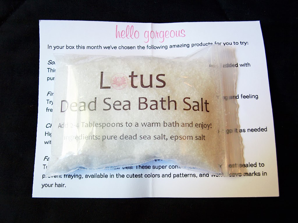 - Lotus Dead Sea Bath Salt – I also received these bath salts, but they weren’t described on the information card that came with the box. I don’t take baths now, but I’ll save these for possible future use.