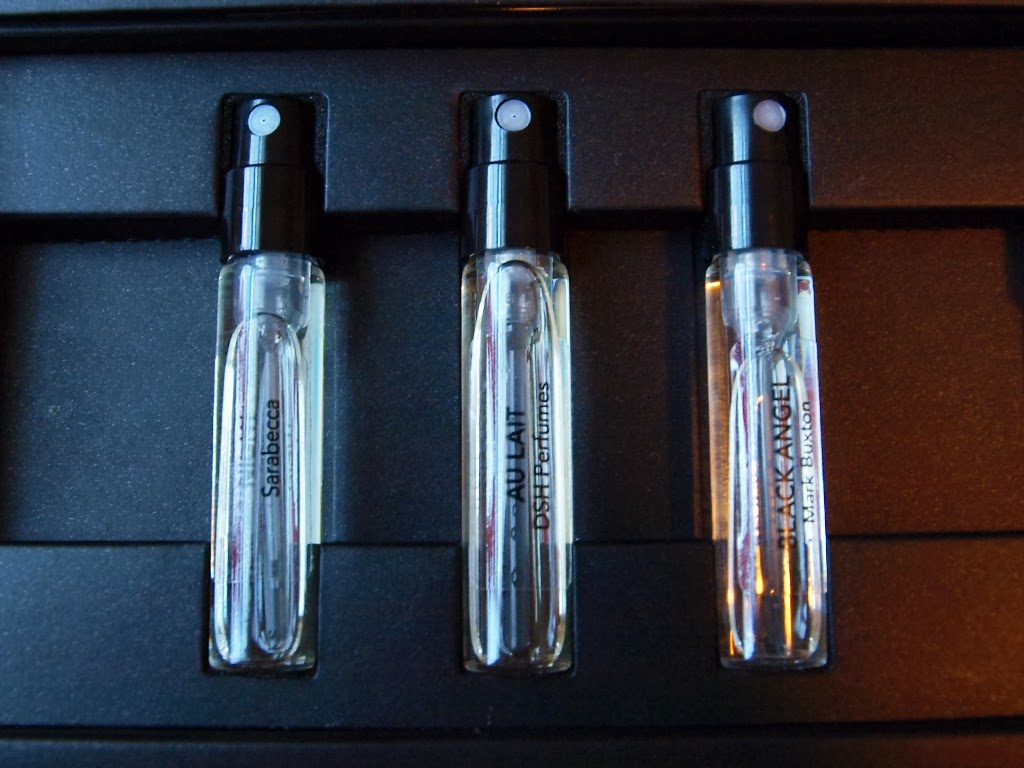 • Black Angel by Mark Buxton ($195 for 100 mL): This was my favorite of the bunch — it’s spicy and woody and has notes that I really enjoy in a perfume.  I would consider purchasing a full-sized version if it wasn’t so expensive (figures that I would like the most expensive one!).  Notes include mandarin, ginger, jasmine, orris, sytrax, patchouli, and amber.