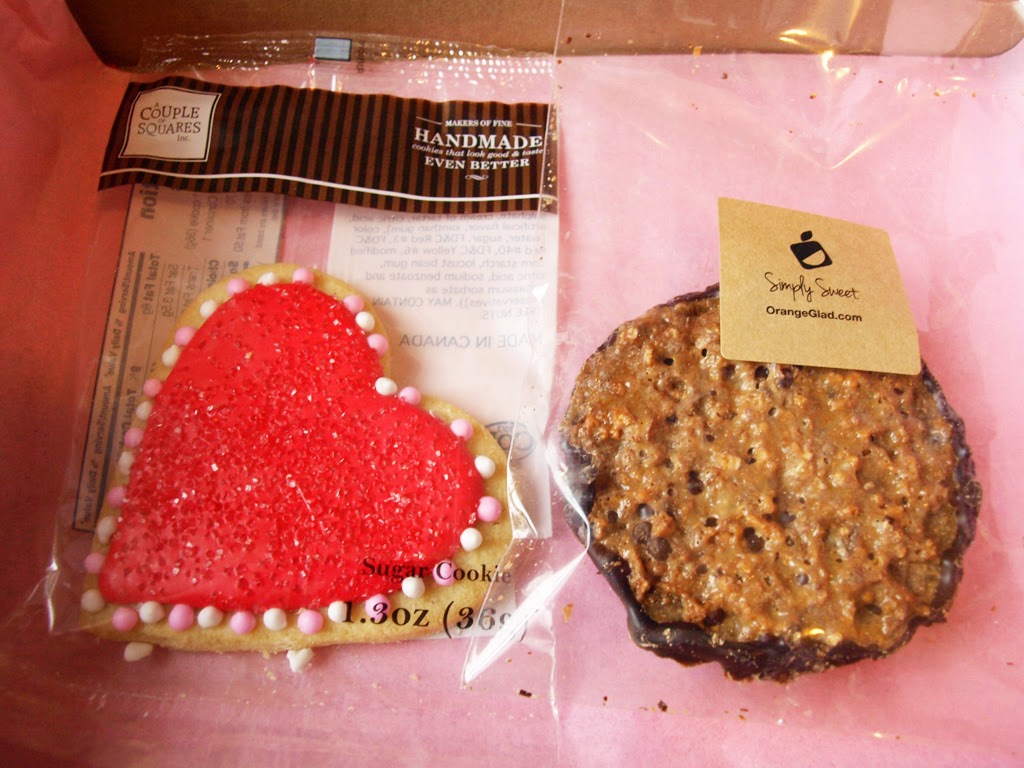 - A Couple of Squares Valentine Sugar Cookie – Sugar cookies are always a win for me, so I was happy to receive one in this box. The frosting was a bit crunchier than I prefer, but still delicious nonetheless.