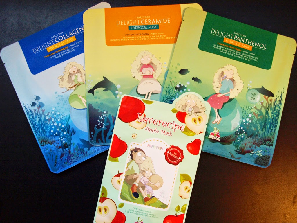 - Sally’s Box 4SET ($14) – This set contained four paper face masks: the Love Recipe Apple Mask, Delight Ceramide Hydrogel Mask, Delight Collagen Hydrogel Mask, and the Delight Panthenol Hydrogel Mask. I used the Apple Mask right away because I love all things apple, but I was disappointed to see that one of the first ingredients was alcohol (this is one of the few items from Memebox I’ve received where the ingredients were also listed in English). As we all know, alcohol is incredibly drying for the skin, so now I’m wary of using the other three because I don’t want to put harsh ingredients on my skin for that long.