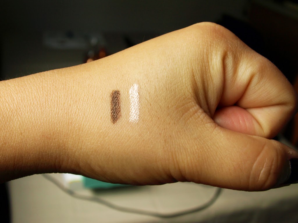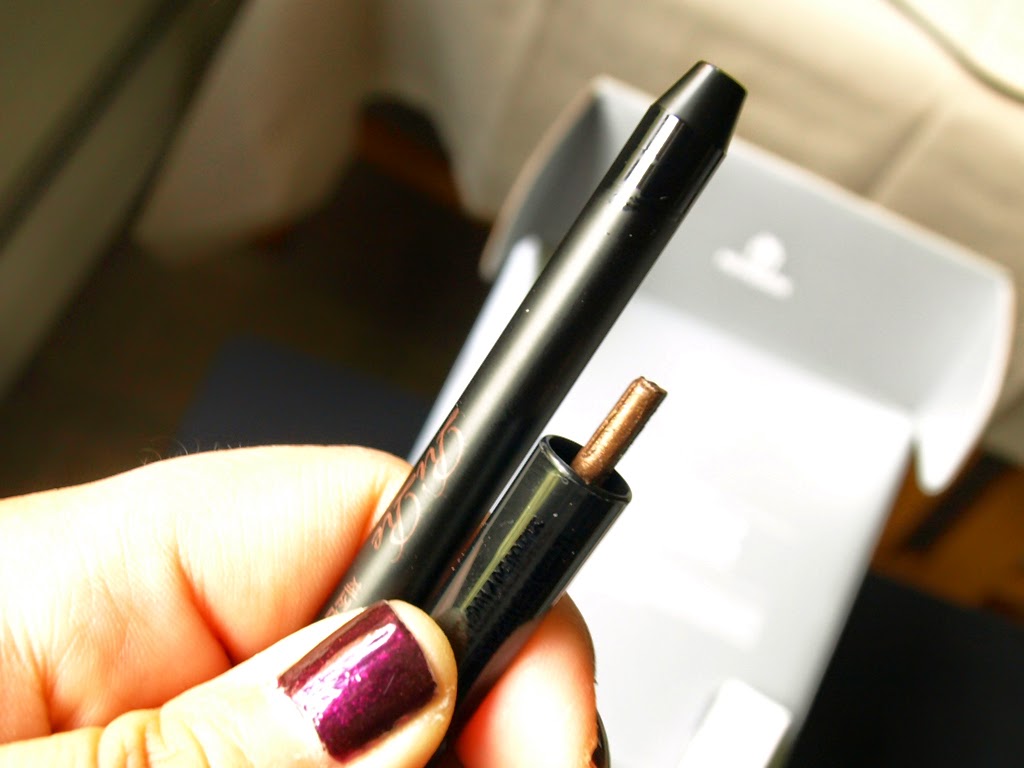 - RiRe Luxe Auto Gel Eyeliner ($14 each) – The two shades are “Champagne” and “Choco Brown” (swatches later on in the post). I usually use black eyeliner, but I like getting different colors because they’re fun to experiment with. The Choco Brown is nice because it’s a bit less dramatic for work, and the Champagne is nice and light so it works well on the inner corners and waterline. Unfortunately both of these were slightly damaged upon receipt (photo below), but I was able to just pop them back into place.