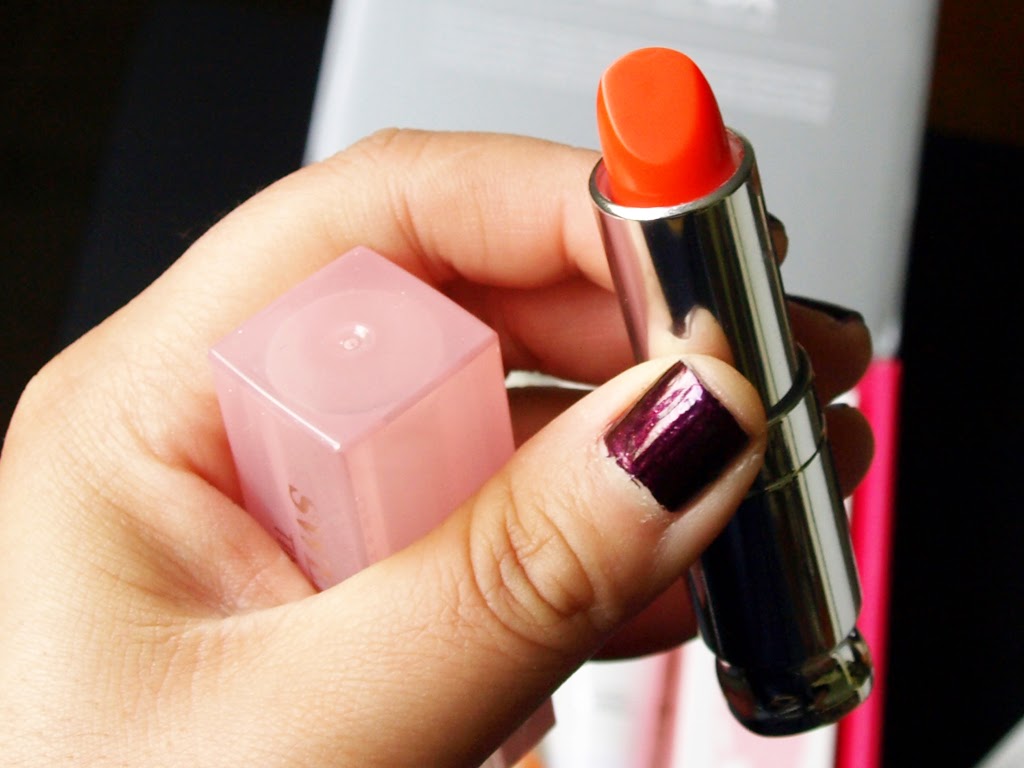 - Secret Key Sweet Glam Tint Glow ($24 for 3.5 g) – The informational card calls this “Secret Key,” but on the packaging it says “Secret Kiss,” so I’m not really sure what the actual brand name is (but I would lean more towards it probably being Secret Kiss). The shade name isn’t listed in English on the packaging, but the choices were “01 Baby Pink,” “02 Juicy Orange,” and “03 Fuschia Purple,” so from that I can guess that I got Juicy Orange. Normally an orange lip color would scare me, but this one is really buildable so it is less intimidating.