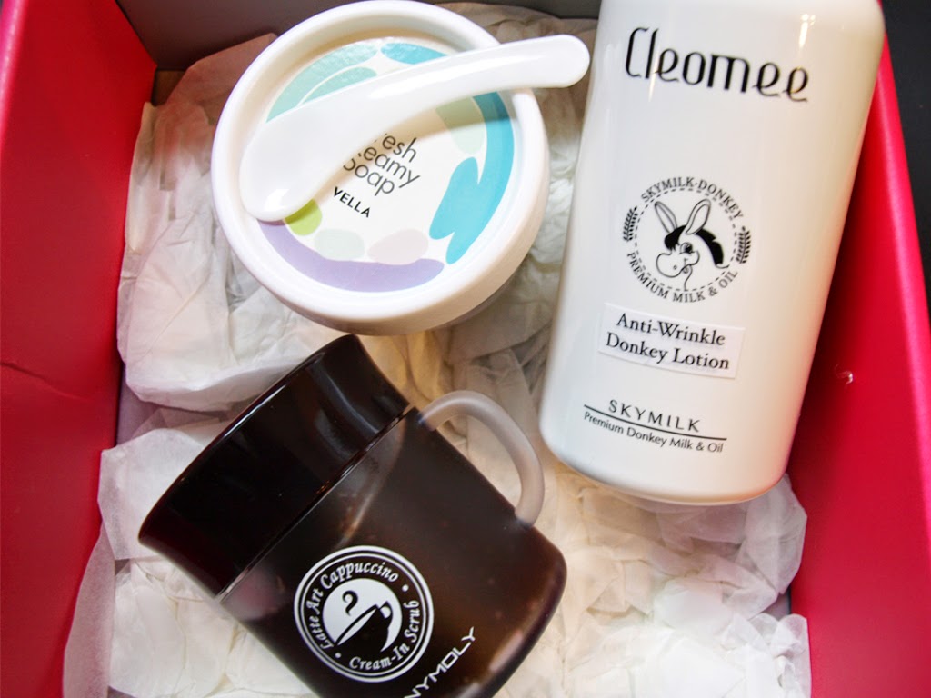 - Cleomee Anti-Wrinkle Donkey Lotion ($83) – I have a really hard time believing that one bottle of this costs $83, but that’s what the info card says. It’s also the product I feel fits the theme the least, but I’m guessing the fact that it’s made with donkey milk is why they included it (coffee, milk, creamer, etc.). Aside from donkey milk, it also contains hyaluronic acid, ceramide, glycerin, vitamin E, and EGF complex. I ran out of body lotion recently, so this came at a good time and is a good replacement.