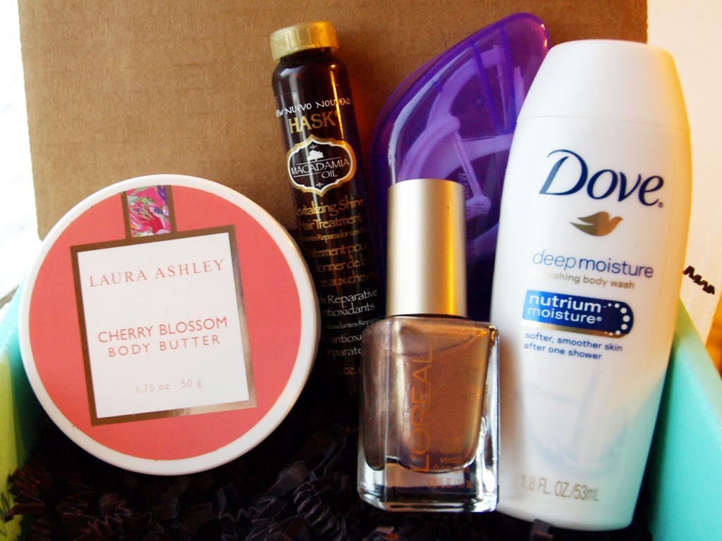• Laura Ashley Body Butter (~$3.33 for 1.75 oz) – Laura Ashley’s body butters are rich and nourishing, and this one is normally sold in a pack of six.  I received the scent “Cherry Blossom,” and it’s floral and feminine.