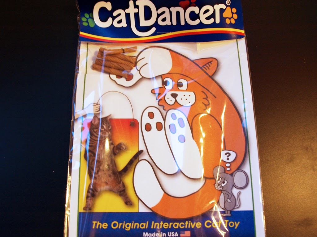 - Cat Dancer Interactive Cat Toy – This is another simple toy that was a hit with Sami. It’s made up of a few wooden pieces attached to a wire, and you can make it twist and jump around so that your cat can chase it. My parents’ cat loves to play with old guitar strings because of they way they wiggle around, and this reminded me a lot of that.