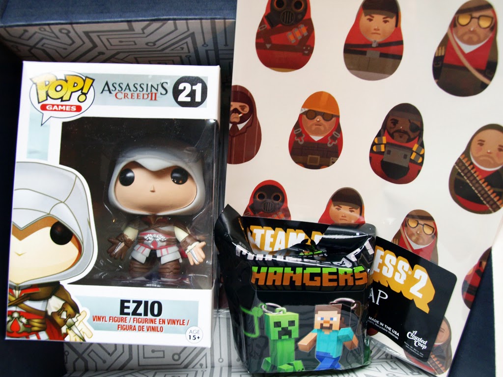 - Assassin’s Creed II Pop Vinyl – This was randomly selected from six options, and our box had Ezio, the main character of the Assassin’s Creed franchise. I don’t know much about the game other than what I’ve observed of Pete playing it, but he was really happy with this and was glad to have gotten Ezio.
