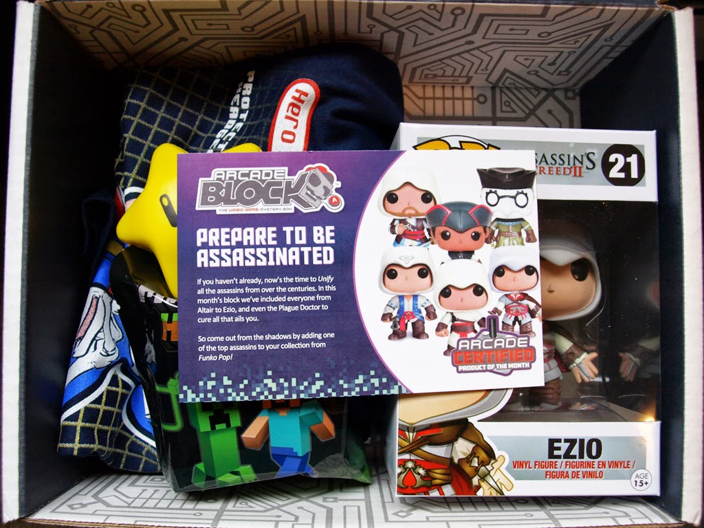 Pete was really excited to get the November Arcade Block because they released a spoiler saying that the box would contain an Assassin’s Creed item, one of his favorite video games. It ended up being a really good box overall, and the Assassin’s Creed item was a huge plus.