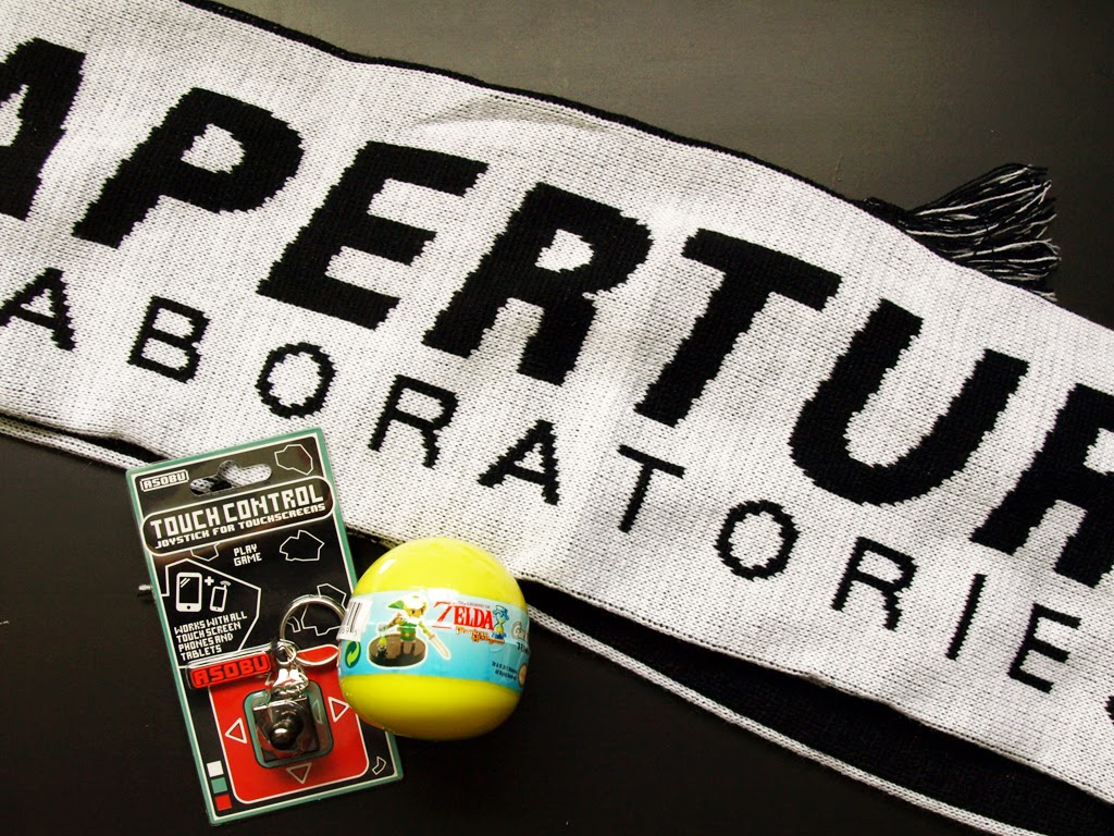 • Portal Scarf ($19.99) – I don’t know a lot about video games, but I do know that Aperture Laboratories is from Portal.  This was Pete’s favorite item in the box.  Even if you’re not a Portal fan, this scarf is really nice for winter; it’s warm and well-made.