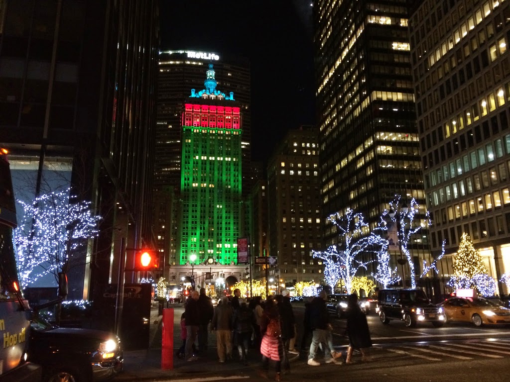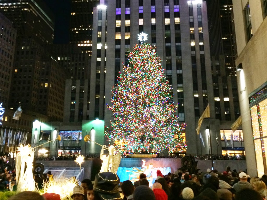 Since this was our last night in the city, we really wanted to see the Christmas tree at Rockefeller Center lit up. It was about a 15 minute walk, but it made more sense to just walk than to get on the subway again. I loved seeing all of the buildings lit up. Unfortunately, once we got to Fifth Ave it was crazy busy. I guess I should have assumed it would be, but I was taken aback by how many people there were. We had to just hold hands so we didn’t lose each other and push through the crowds!