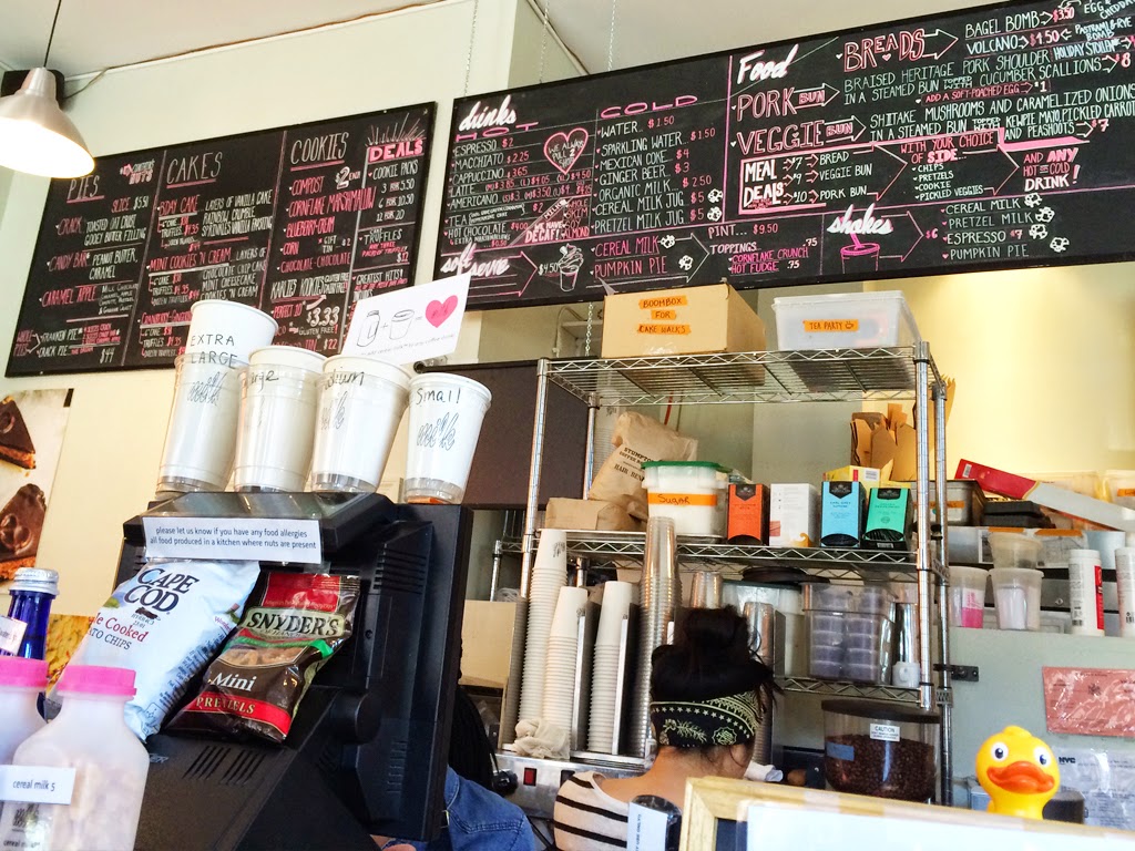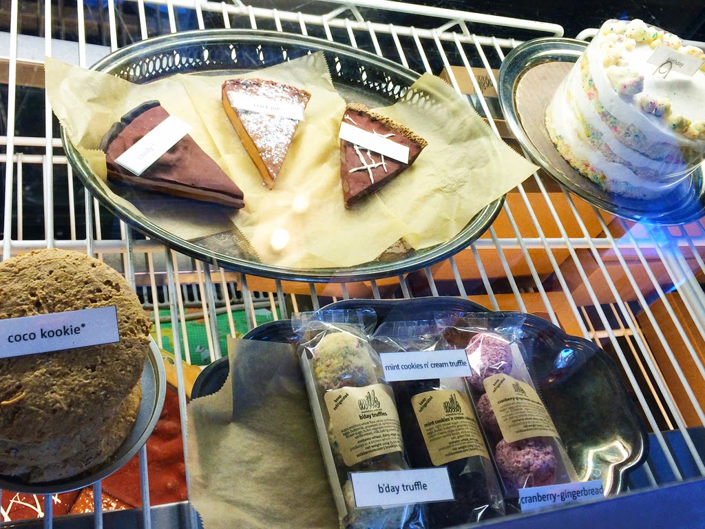 After being on our feet for three hours we were tired and hungry! There were a few food carts lined up outside of the museum, but we weren’t in the mood for fried food. We walked a few feet into Central Park to explore that but then we realized we didn’t want to walk anymore, either, so we took the train to one of the places I really wanted to try: Momofuku Milk Bar! We went to their Upper West Side location and got some cookies and cookie mix. I had gotten their Cornflake-Chocolate Chip-Marshmallow Cookie Mix in my Home Sweet Homespun Birchbox and they were so good that I wanted to visit the shop in person and get more. They actually had only one tin of the Cornflake mix left (thankfully!), and I also picked up a Confetti Cookie Mix. The shop itself was small, but they had a bunch of desserts in the window for you to choose from.