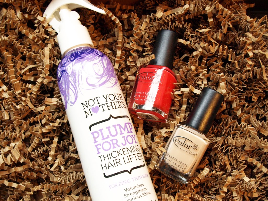 - Not Your Mother’s Plump For Joy Thickening Hair Lifter ($5.99 for 8 fl oz) – I already have pretty thick hair but I was interested in trying this because I’ve been letting my hair air dry more often recently and I like to add a little product to keep it from looking too flat. I liked this a lot; I applied it to damp hair and scrunched it and it left my hair looking wavy.