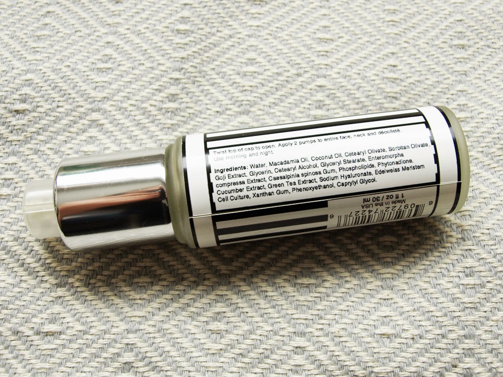 I opted to try the Snow Flower Creme because I was intrigued by the name. It contains edelweiss plant stem cells, which have been shown to decrease wrinkles by up to 15% in just 22 days. The cream also contains goji berry extract, which helps to smooth, lift, and firm the skin. You can view the rest of the ingredients in the photo above or at the product page.
