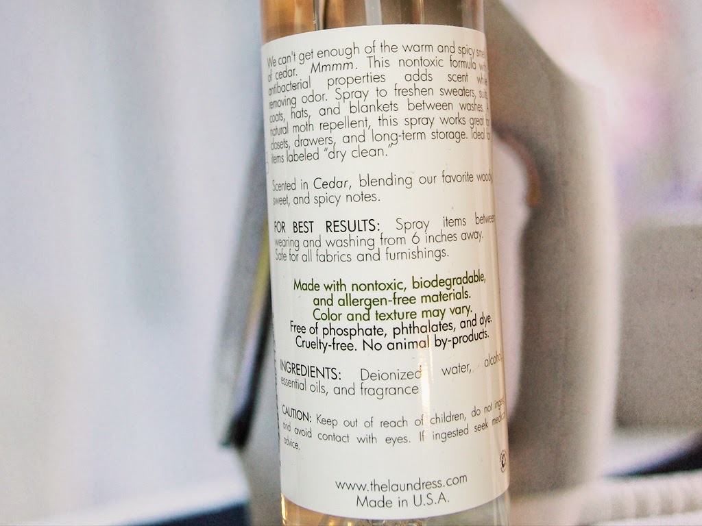 My favorite thing about the Wool & Cashmere Spray is its scent–it is amazing! The Laundress describes it as “our modern take on the traditional woody scent.” Woody scents are one of my favorites, and this has an excellent warm and spicy cedar smell. It refreshed my clothes and left them smelling wonderful!