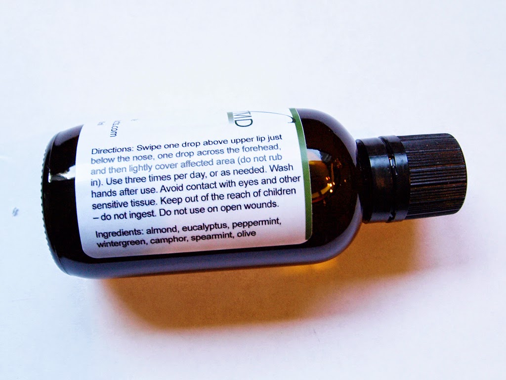 It’s also easy to use. All you have to do is dispense a drop from the stopper opening and swipe it across your upper lip just below the nose and put another drop across your forehead. Then take a few more drops and lightly cover the affected area, making sure not to rub it in. You can use it three times per day or as needed. If you’re using it to fight bug bites it’s best to apply it as soon after getting the bite as possible.
