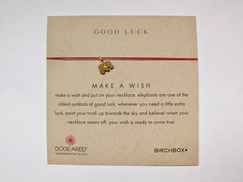 I normally don’t go for the Birchbox Plus items but I really wanted this Dogeared Elephant necklace. It cost $24 to add on to my box. I don’t even know if I’ll wear it because the whole point is to make a wish then wait for the string to break, and I don’t want it to break and not realize it and then lose the charm!