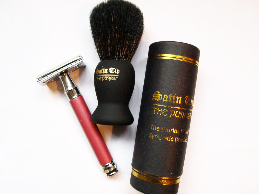 - Satin Tip The Purest Synthetic Brush: This brush is SO soft! The bristles are seriously amazing and it lathers up very nicely when used with the included soaps.