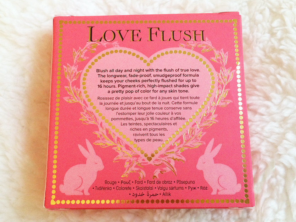 Full disclosure: the main reason I purchased this was because it has bunnies on it! I love bunnies. I also love Too Faced’s blushes. I was previously using their Sweethearts Perfect Flush Blush (read my review of my favorite Too Faced products here), but I wanted to get a matte blush for winter. All of the shades in the Love Flush line are really pretty, but I picked How Deep Is Your Love? because it matched my skin tones the best. All of the blushes in this line cost $26 for 6 grams of product.