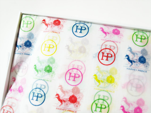The first thing I noticed about this box is how beautiful the packaging is! The box itself is sturdy and embossed with the Harvey Prince logo on the top, and inside there was the prettiest tissue paper.