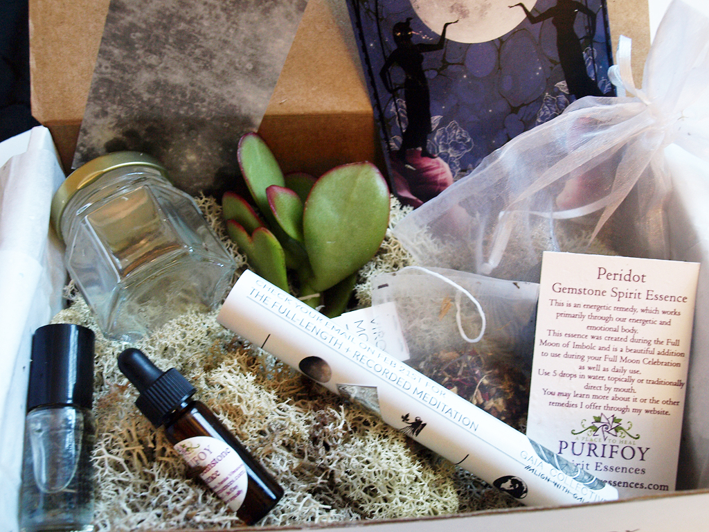 - Full Moon Ritual items – A succulent chipping and hexagonal jar with lid were included for the actual ritual.