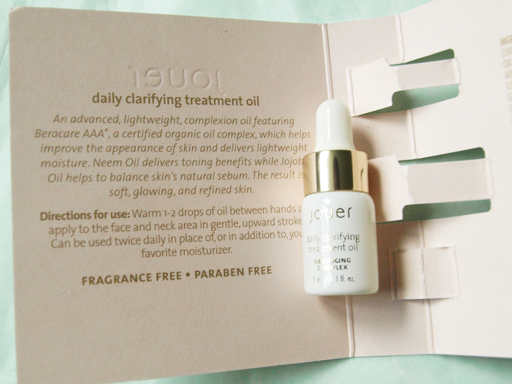 - Jouer Daily Clarifying Treatment Oil – I love using skincare oils. This moisturizes and tones while also combating clogged pores. It absorbs quickly and doesn’t make my skin feel too heavy after applying it.