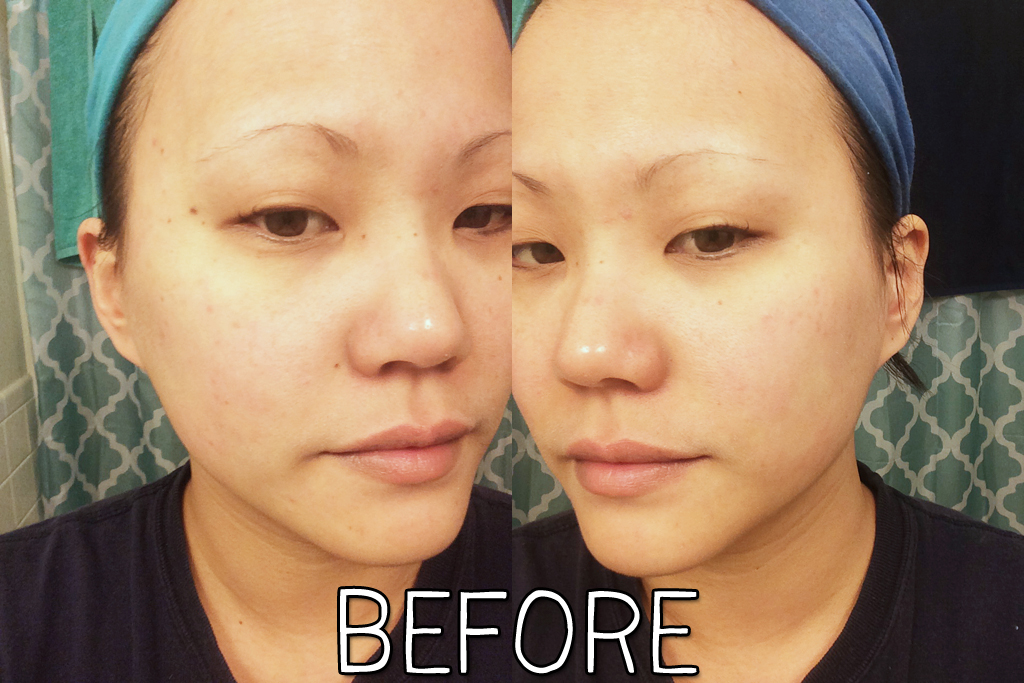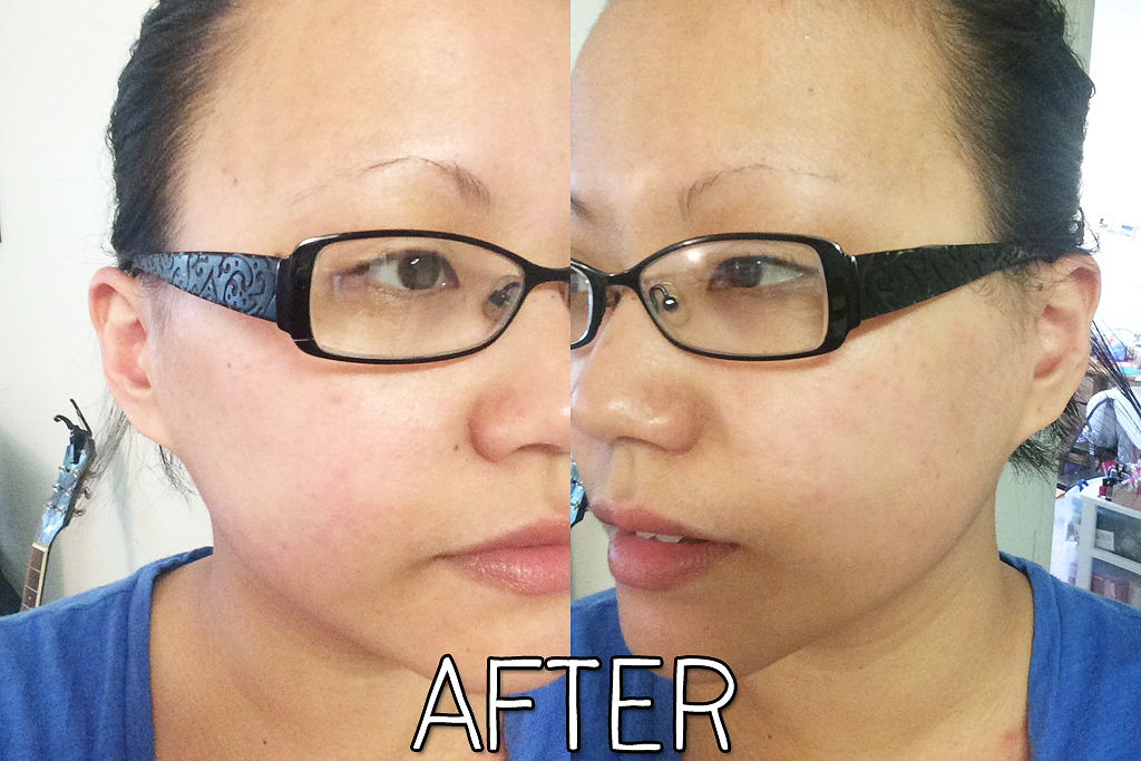 Here are my before and after photos. I’m embarrassed to have these shots of my face, sans makeup, online, but I figured it was important to show you the results! As you can see, I have clear red patches on my cheeks and also a bit on my nose in the “before” shots. Now that I look at these side by side, the redness is still there in the “after” shots, but it looks less prominent.
