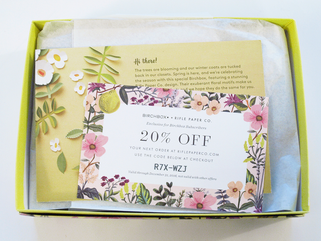 Birchbox teamed up with Rifle Paper Co. last April to create some really beautiful box designs, and they did it again this year! I love these boxes.