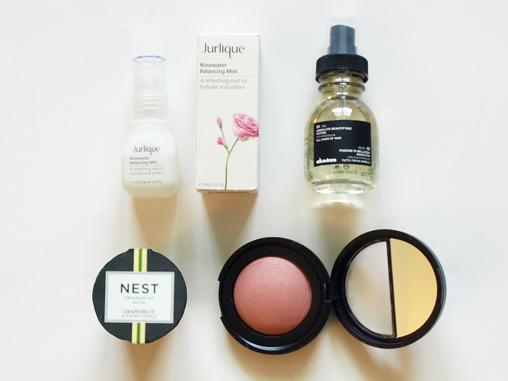 - Jurlique Rosewater Balancing Mist – I already had one of these when I got this box, but this spray is wonderful so I’ll be saving it for when I run out of my current bottle. It’s rose-scented and balances pH levels and refreshes skin. I like having this on hand in the summer to spray on when I start feeling sweaty (yeah, gross, but it happens!).